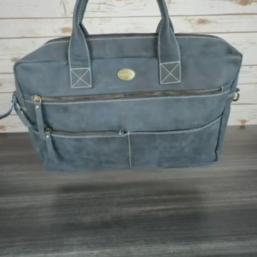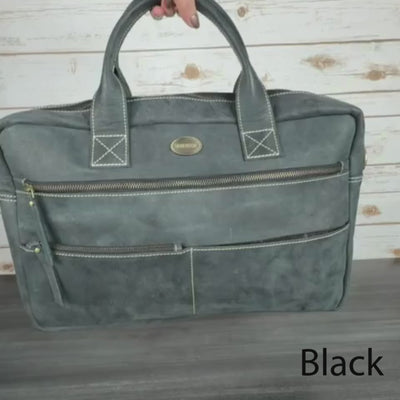 Elevate your professional travel with this premium buffalo leather laptop bag designed to fit 17" laptops. Combining functionality with sophisticated style, this versatile briefcase features a detachable shoulder strap, luggage sleeve for suitcase attachment, and multiple compartments to keep you organised on the go.