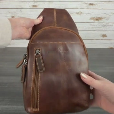 This Greenwood Leather crossbody sling bag is designed for streamlined carry and everyday practicality. Crafted from full-grain leather, it offers durability, structure, and a natural finish that develops character with use.