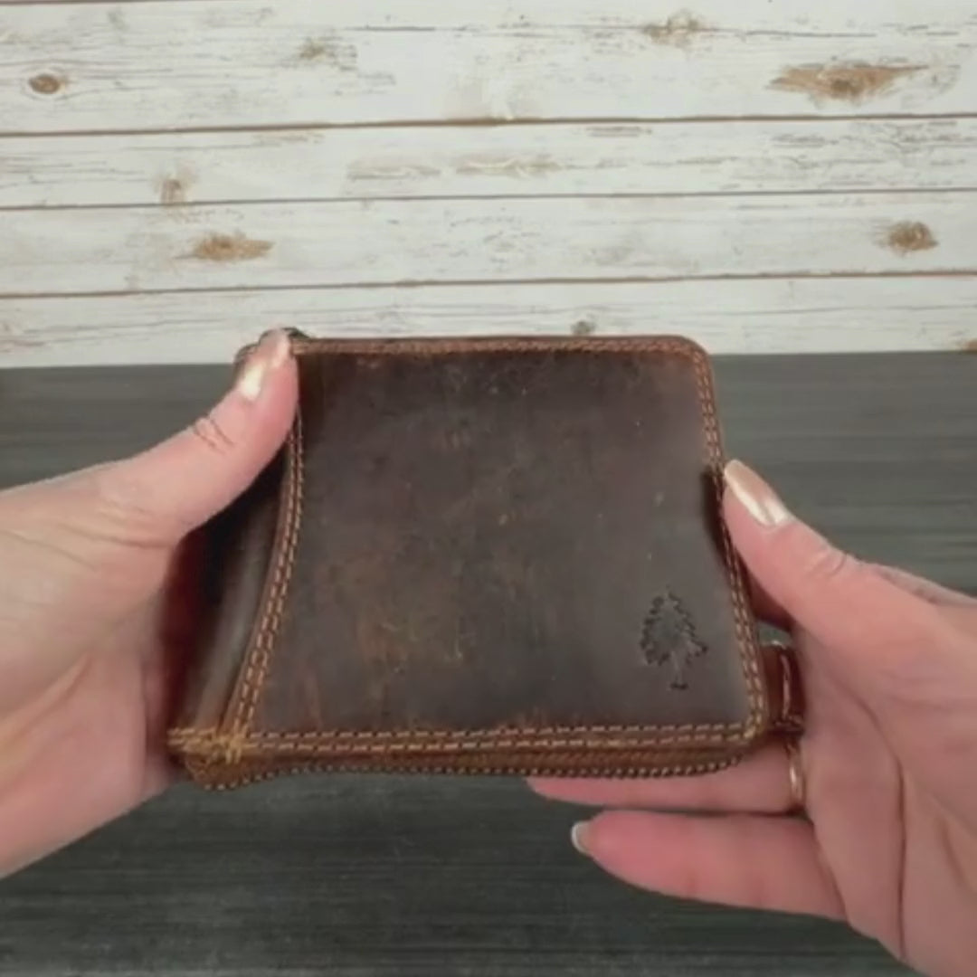 Greenwood Men's RFID Zip Around Wallet. This Greenwood leather wallet is made of high-quality Full Grain Cow leather and equipped with the latest RFID technology. The wallet is easy to use and holds more than enough space for all your cards and (pocket) money.