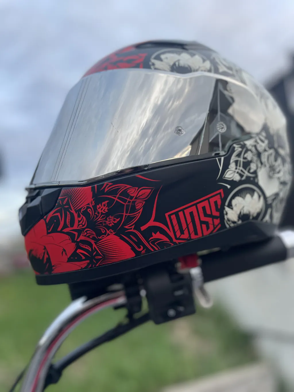 VOSS 988 Moto-1 Red Mandala Full Face Matte Motorcycle Helmet