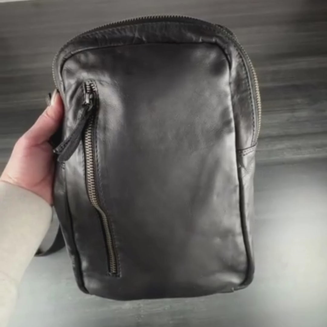 Experience the perfect blend of style and functionality with this leather chest front bag and backpack. Designed for convenience, this versatile bag can be worn across the chest or as a compact backpack. Crafted from premium leather, it features multiple compartments to keep your essentials organized and within reach. Perfect for everyday use, it adds a touch of sophistication to your look while ensuring practicality.