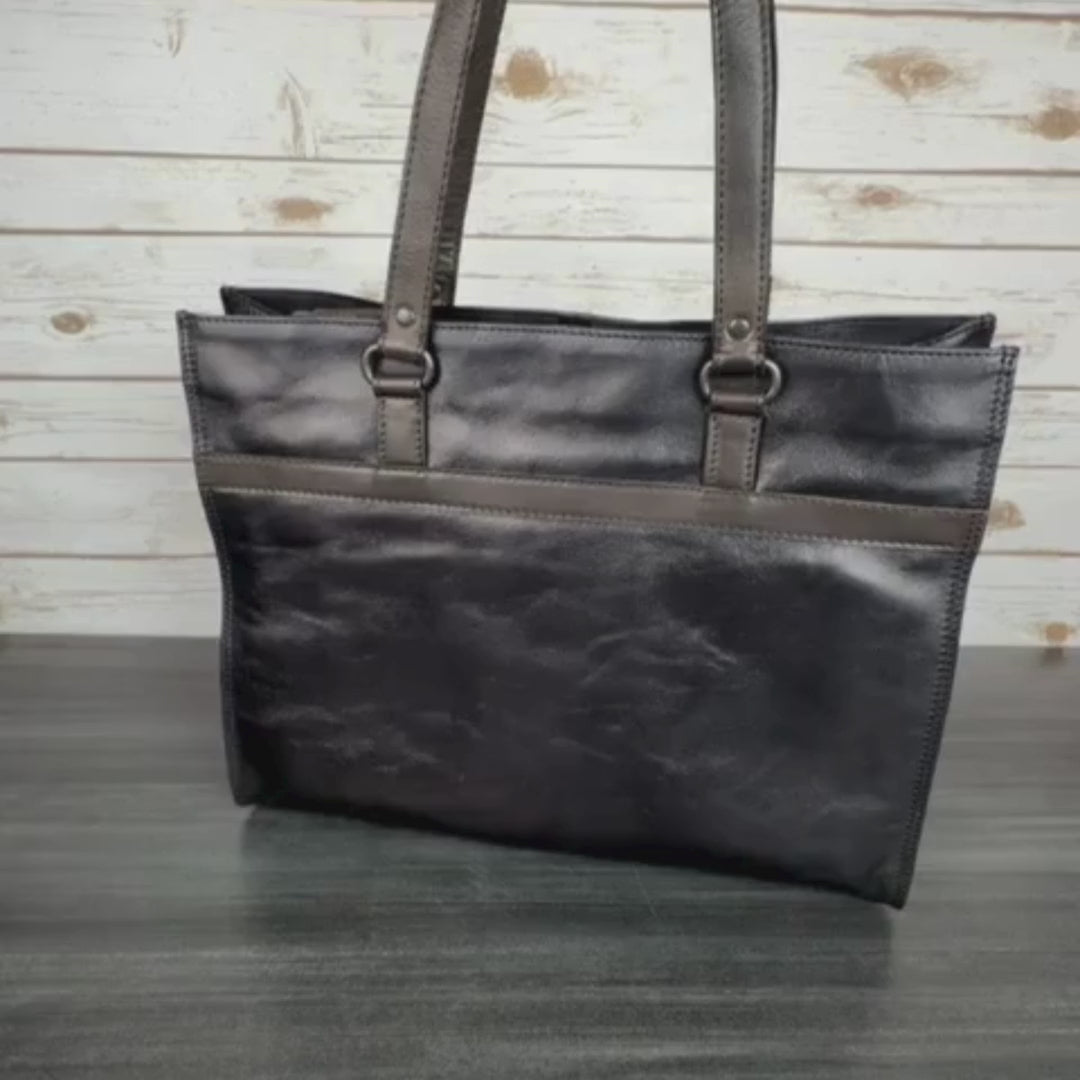 Command the boardroom and the airport with the MET cow leather work tote, a masterclass in organized, stylish travel. This versatile 15-inch bag features a sophisticated two-tone black and brown color scheme, a dedicated laptop compartment, and a detachable crossbody strap for ultimate versatility. Complete with a luggage strap for easy transport, this tote is designed for the professional on the move.