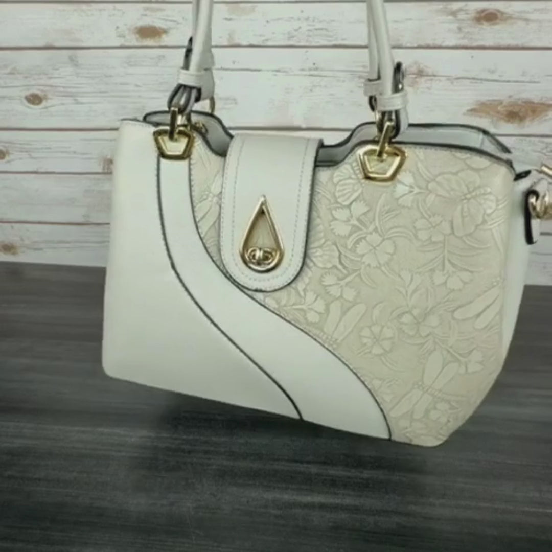 Temptation Italy Faux Leather 2-Handle Bag with Dragonfly and Flowers