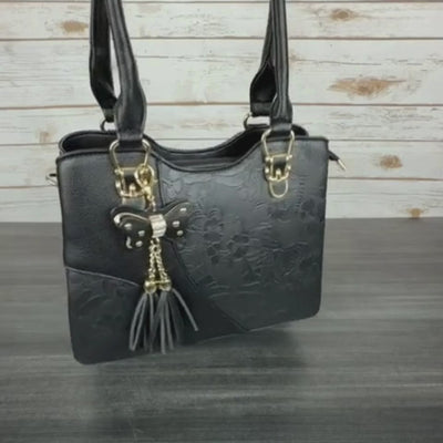 Temptation Italy Faux Leather Shoulder Bag. Floral & Dragonfly Embossed Handbag Sale price$85.00