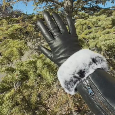 Women's Lamb Leather Gloves with Rabbit Fur Trim